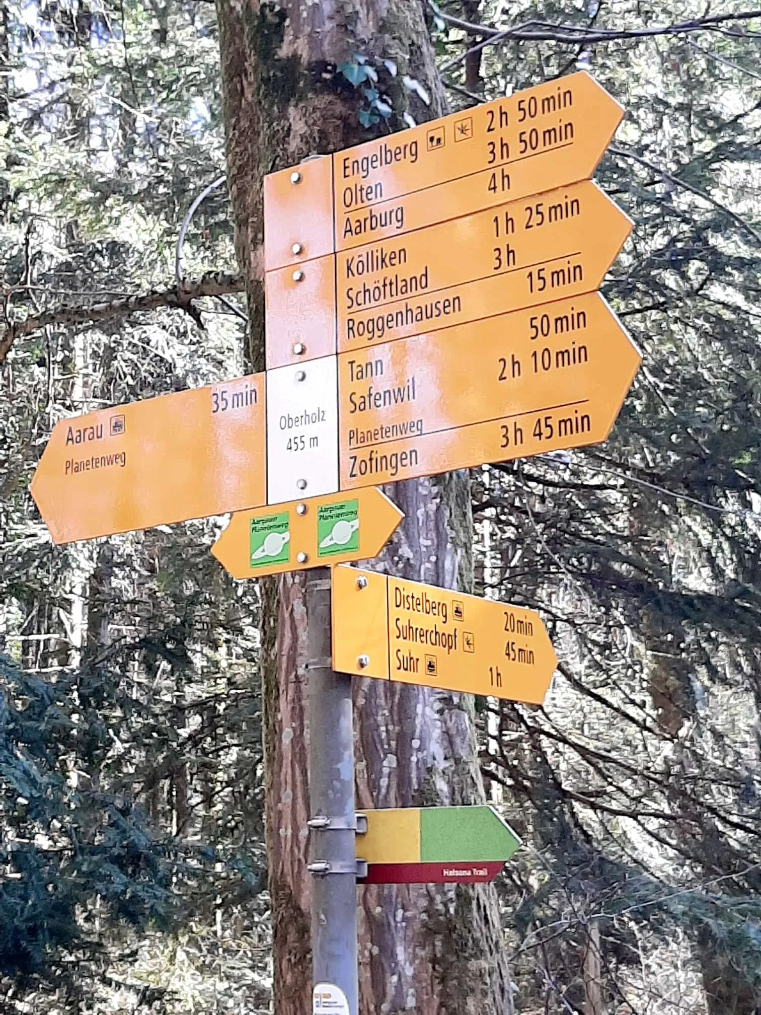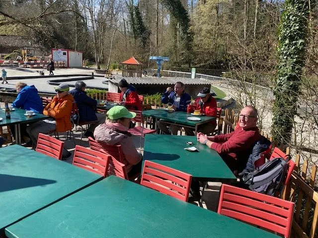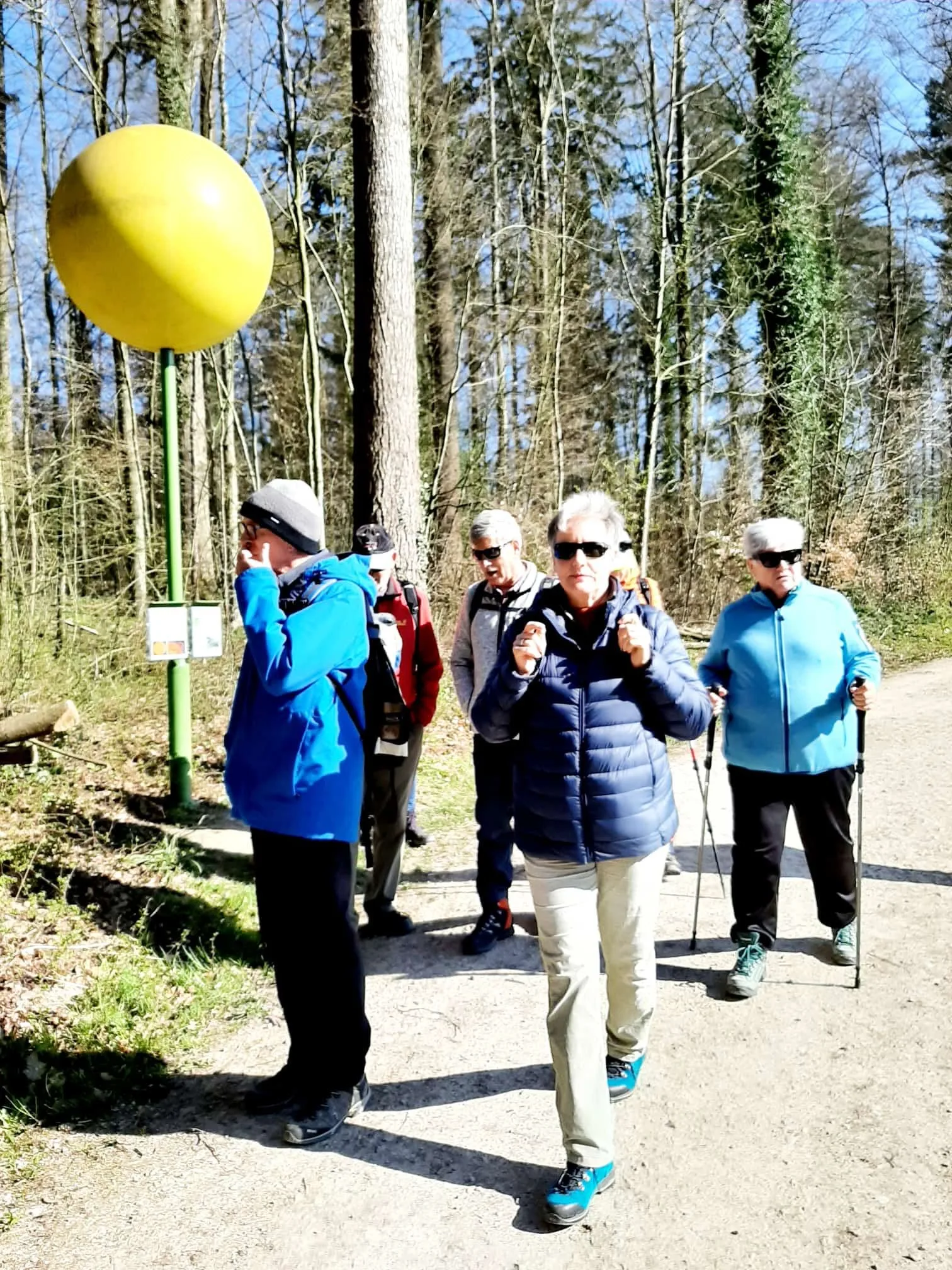 Der 2. April 2025 war ein wunderbarer Frühlingstag, mit starker Bise und einer Temperatur von morgens 6°C bis nachmittags 20°C. An diesem noch kühlen Morgen trafen sich10 Teilnehmende der „Seniorenwanderung von Aarau nach Gretzenbach“, bereits im Zug von Dulliken nach Aarau. Beim Treffpunkt am Bahnhof unter der grössten Bahnhofuhr der Schweiz um 10:00 Uhr, waren wir Wandervögel mit 4 Weibchen und 7 Männchen komplett. Wir starteten westwärts Richtung Behmen, Rathausgarten, neue Kantonsschule und dann bergan zur Echolinde. Dort wurden wir mit der schönen Aussicht über Aarau, Küttigen, Buchs, Wildegg, Lenzburg und weiter, für die Mühen des Aufstiegs belohnt. Die Bise war bissig, sodass wir nach kurzem Verweilen, wenige Schritte weiter bei der „Sonne“ zur „Planetenwanderung“ starteten. In kurzen Abständen folgen Merkur, Venus, Erde, Mond und Mars. Bei jedem Planeten kann man auf Tafeln viel Interessantes über unser Sonnensystem erfahren. Kurz nach Jupiter machten wir einen Abstecher rechts ab, runter zum Tierpark Roggenhausen. Weil das Restaurant bis 2026 umgebaut wird, konnten wir auf der kleinen Gartenterrasse bei der provisorischen Holzhütte unsere Zwischenverpflegung bei wärmendem Sonnenschein einnehmen. Jetzt brauchten wir die ca. „2 Fränkli 75 “ welche für eine feine Kürbissuppe, Schweinswürstchen oder Flammkuchen eingesetzt wurden. Nach einer Stunde Rast und der Begrüssung der verschiedenen Tiere ging es wieder 500 Weg-Meter bergan, um wiederum dem flachen Waldweg zu folgen und gemütlich die erwachende Frühlingsnatur zu geniessen. Wir begegneten noch Saturn und Uranus bevor wir im Tann beim Wegweiser den Planetenweg verliessen. Richtung Schönenwerd, am Gretzenbacher Waldhaus vorbei, dann links, erreichten wir nach ca.9 Km und einer Wanderzeit von ca. 3 Stunden unterhalb des Waldrandes den oberen Dorfteil von Gretzenbach, wo uns der Weg unvermittelt in einen Garten führte. Ein Tisch mit 11 Stühlen stand bereit und bald züngelte das Feuer im Grill. Spätestens jetzt verstanden alle warum „1-2 Cervelas und Brot für alle Fälle“ auf der Einladung stand. Mit Apéro, Grillgut, Salat und Dessert liessen wir auf dem sonnigen Sitzplatz der Organisatoren Claire und Peter den wunderschönen Tag lustig und gemütlich ausklingen. Zur Heimreise wurden alle an die Bushaltestelle begleitet. Danke an alle Teilnehmenden, es war ein super Tag der sicher nicht so schnell vergessen geht.